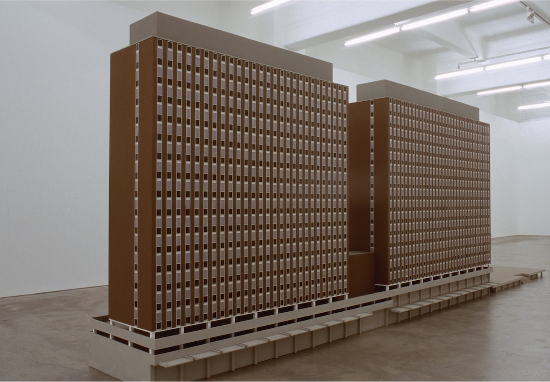 Callum Morton was born the day Le Corbusier died. The son of an architect, he studied architecture but dropped out to become an artist, which explains his critical relation to architecture (especially modernist architecture), as an Oedipal drama, an avantgarde succession, and a generation gap. He’s been creating scale models and images to illustrate the demise of well-known architecture, returning what has been repressed in its history to suggest an unconscious underside to the canon.