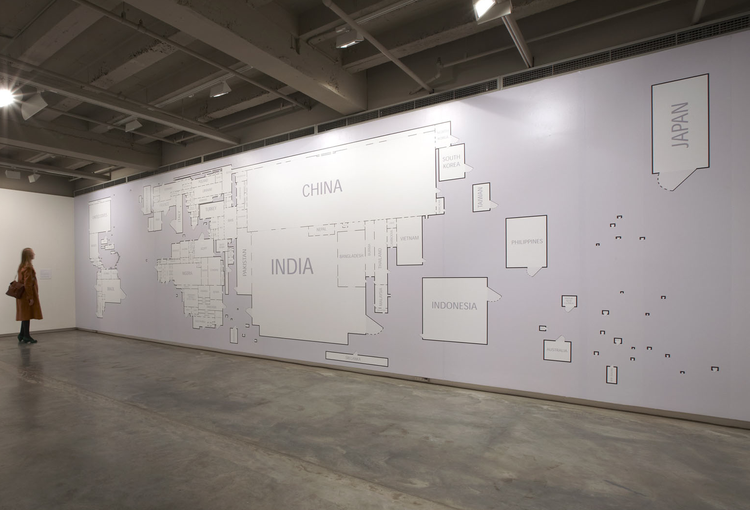 Using charts, tables, maps, and various databases and software, Bufardeci generates a new multidimensional space that barely resembles the world we are used to, the world most often put to us by Governments, or businesses, or religions. She is one of an active group of radical cartographers looking for the right shape of the world, a more accurate data-set to describes our global condition.